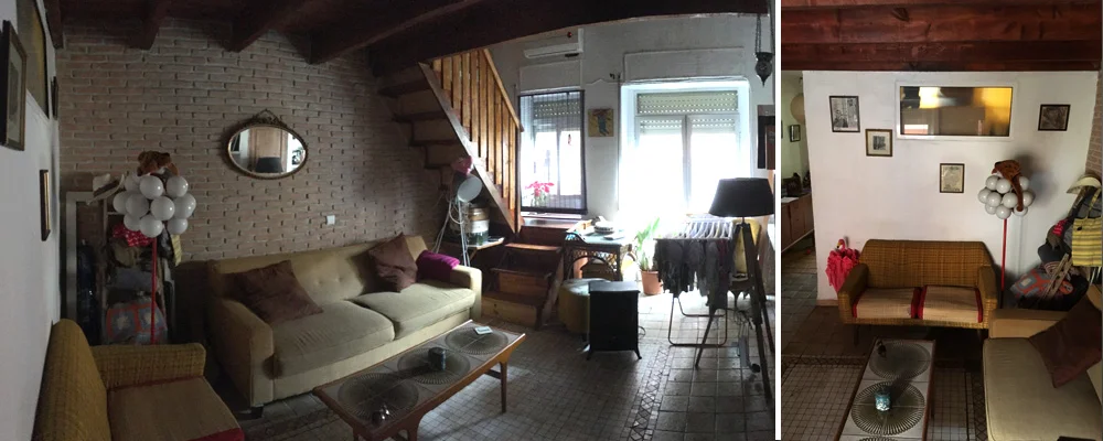 Este piso de 55m, situado en el barrio histórico de Cabanyal, es uno de los 4 pisos en lo que era una casa unifamiliar. El espacio es largo y estrecho y a pesar de tener techos muy altos (5 metros de altura!), se sentía oscuro y pequeñito. Un pequeño dormitorio, que nuestros clientes utilizaban para el almacenamiento, construido en el medio del espacio más un altillo semi-cerrado por encima el salón hizo una distribución incómoda y bloqueó la luz de cada lado del piso.
