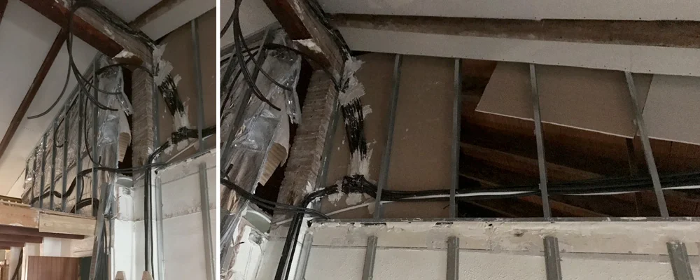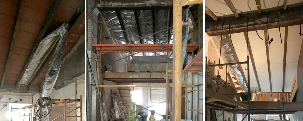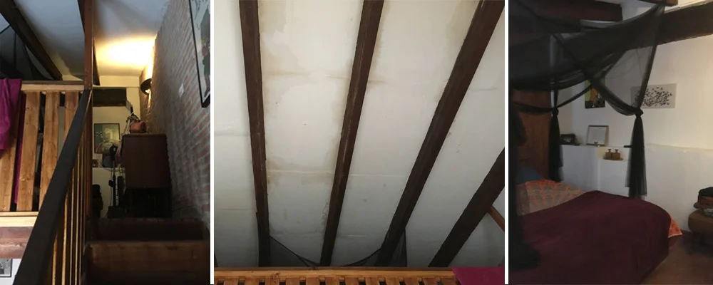 Removing the false ceiling and loft wall also revealed the original beams and full ceiling height of the apartment, which made the space feel more than double its size. We also discovered a huge gap between the 2 upstairs apartments that was not properly sealed when the original house was split.
